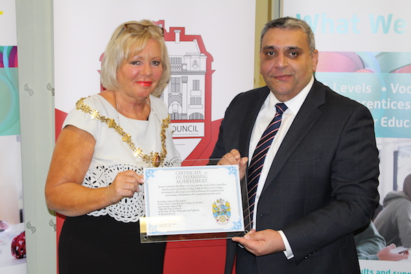 Principal and chief executive Jasbir Dhesi accepted the award on behalf of the college from the mayor of Crewe, Cllr Diane Yates, at a special event to celebrate the 175th anniversary of the college in Crewe.