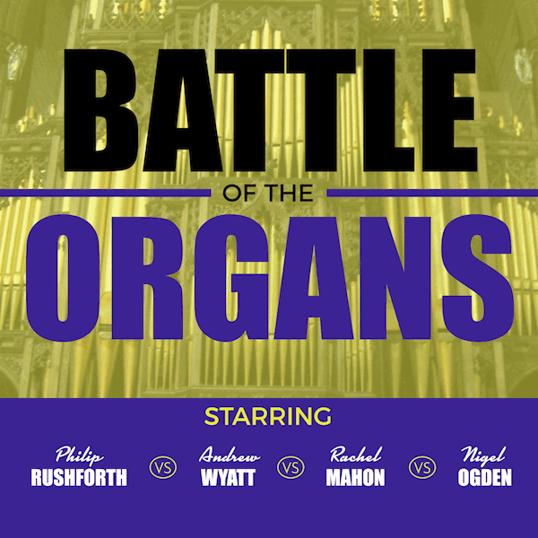 Cathedral organists Philip Rushforth, Andrew Wyatt and Rachel Mahon will be joined by special guest star Radio 2’s Nigel Ogden for a light-hearted, one-off organ skirmish jam-packed with musical variety and virtuosity.