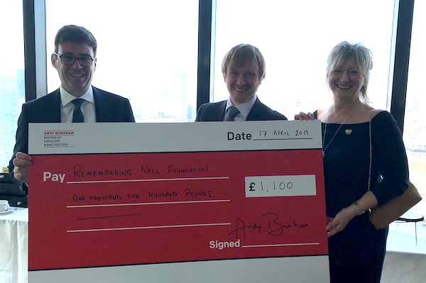 Mr Burnham also made a presentation on behalf of Nell’s charity to representatives of The Wood Street Mission (WSM).