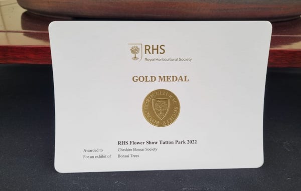 “After 22 years of exhibiting at RHS Flower Show Tatton, the Cheshire Bonsai Society can now add it to their existing 13 Gold Medals, three Silver-Gilt Medals, six Silver Medals, two Best in Plant Societies Marquee awards and one Best in Floral Marquee award.”