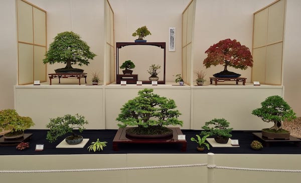 Last year they took three tokonoma (recess) displays, 10 display poles and 25 bonsai trees – along with a collection of accent plants.