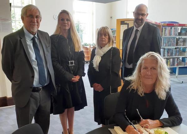 They were joined by chief executive Andrew Lewis and council staff to sign the books of condolence and to lay flowers in each location.