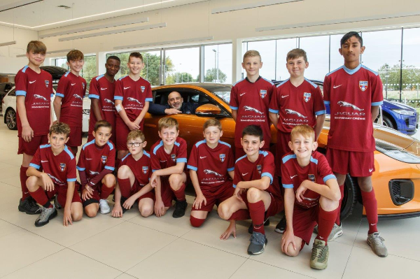 The boys visited the dealership, on Crewe Green roundabout, along with their manager Steve Jenkins, and head of business at Swansway Jaguar Matt Hill was delighted to see the boys showing off their new kit.