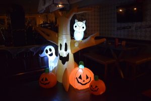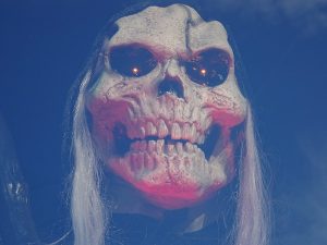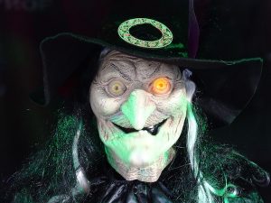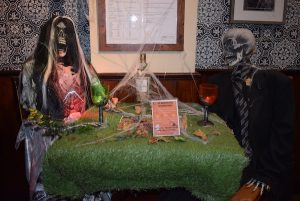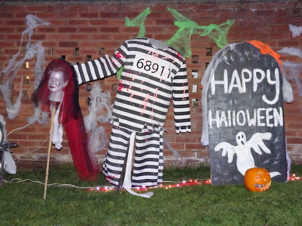 “House features included skeletons, witches, scarily-dressed mannequins – some headless, ghosts, clowns, cobwebs, coffins, elaborately carved pumpkins, and scary sounds.