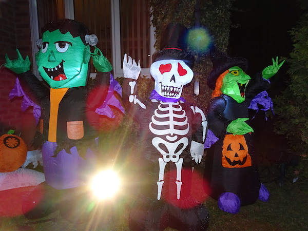 “They were all a spooktacular sight, but I particularly liked the houses on Capenhurst Avenue with its hanging corpses and monster maze, Nevis Drive with inflatables and animatronics, Barn Croft Road with a giant spider and web and projector showing different Halloween songs and Verdin Court – raising money for Cheshire Dogs Home – with its cauldron and tombstones.”