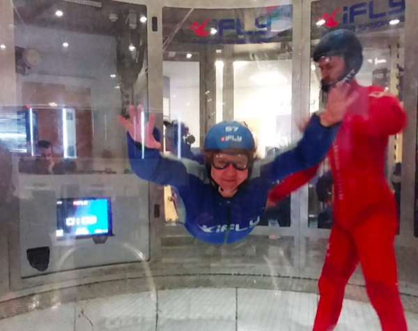 With wind speeds of up to 180mph from 1600 horse power motors Rotary president Carol Parry and her team were whisked up, down and around in the 1.9m vertical wind tunnel at the indoor skydiving facility ‘iFLY’ near The Trafford Centre.