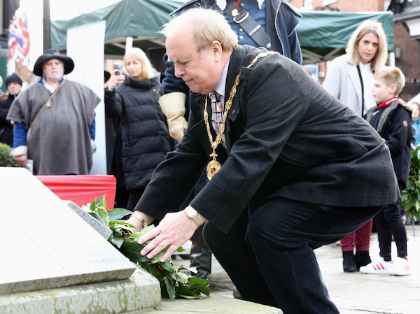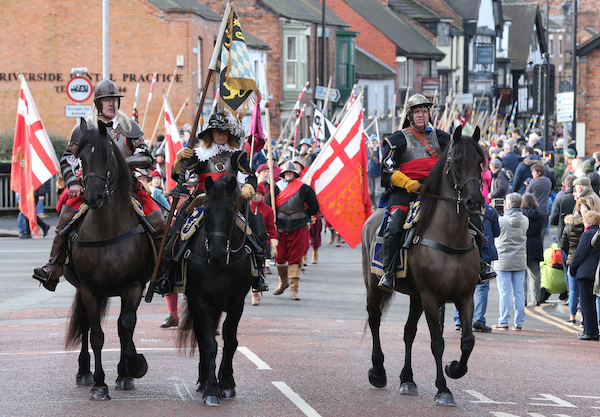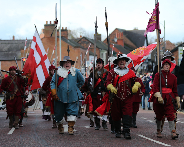 There was a cavalry-led parade of several hundred Sealed Knot troops from Malbank School & Sixth Form College along Welsh Row into the town centre, followed by a wreath-laying ceremony at the war memorial on the town square – to commemorate people who died in the Battle of Nantwich and other battles – and an inspection of troops.