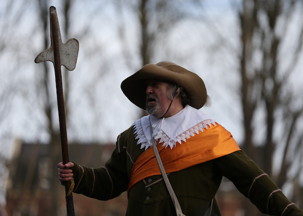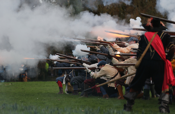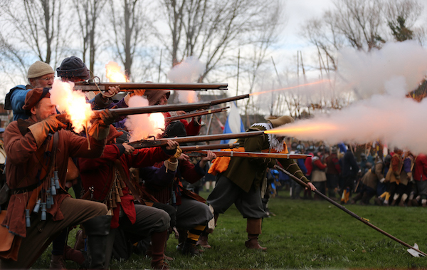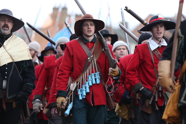 The troops then paraded to Mill Island to re-enact the 1644 battle.