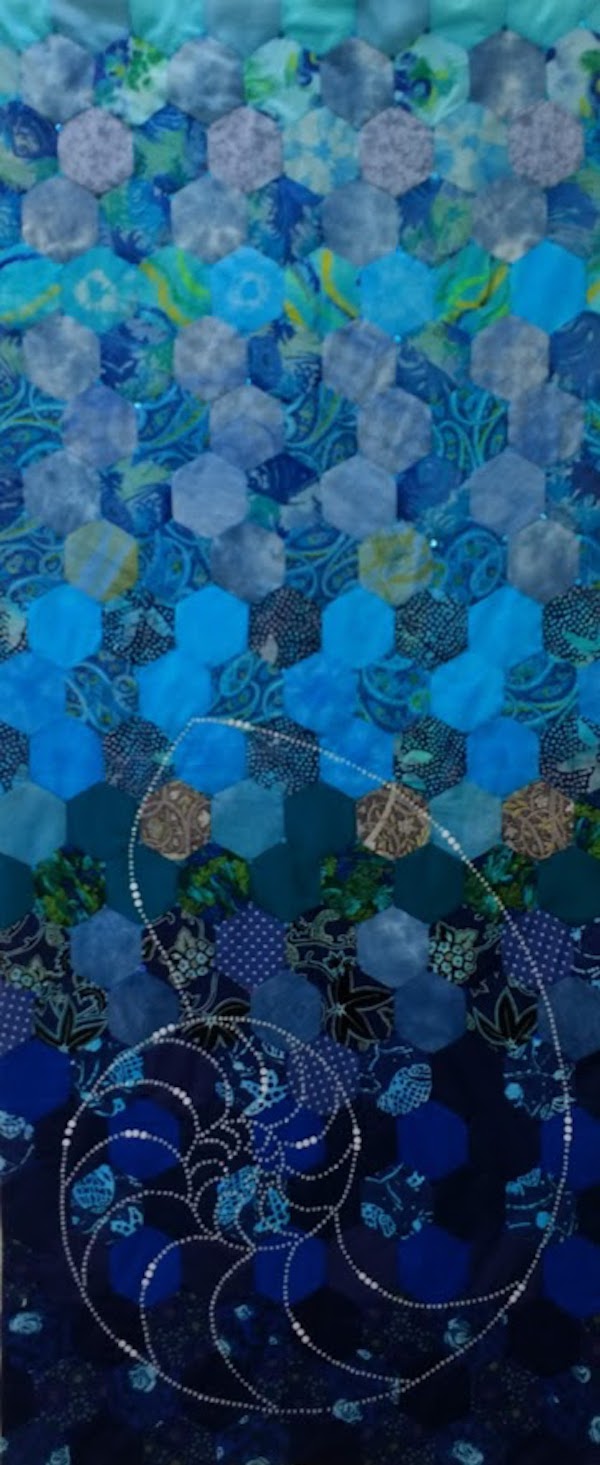 It displays a wide range of influences, interests and techniques used in textile art. Many pieces are a collage of mixed media, dyeing, machine and hand stitch, applique and reverse applique.