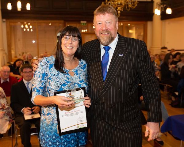 The Business Award went to Julia Chard of Mr Simms Olde Sweet Shoppe for her instrumental role in founding both the Pumpkin Path and Bunny Hop as well as her ongoing support for community organisations throughout the years.