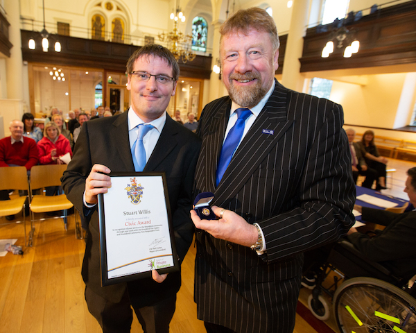 The first Civic Award went to Stuart Willis for his voluntary work with the Knutsford Fire Cadets and Knutsford Community First Responders.
