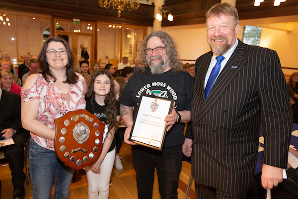The 2018 Community Award went to the volunteers of Lower Moss Wood. Lower Moss Wood provides sanctuary for sick and injured wildlife, supported by its numerous volunteers, it provides around-the-clock care and feeding.