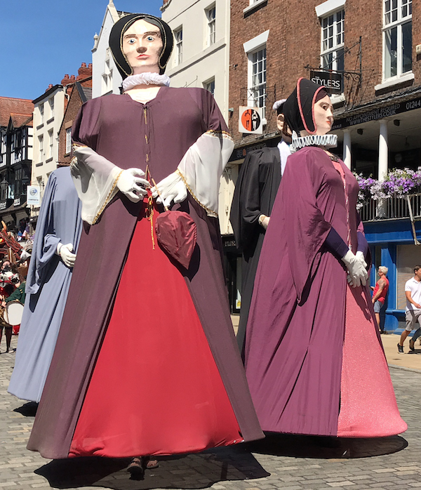 Characters in the parade are based on descriptions from the city archives including their famous family of giants.