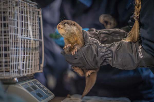 The otter pups had their sexes determined (four girls and one boy), and were weighed. They had their heart beats listened to and also received a physical examination before being given a clean bill of health.