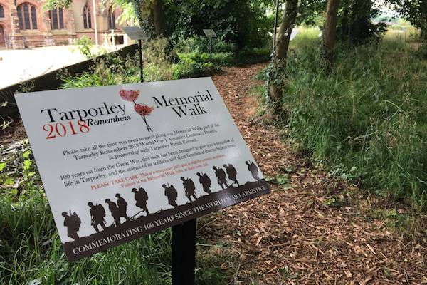 The Tarporley Memorial Walk has been created by the Tarporley Remembers 2018 community project and funded by Tarporley Parish Council, remaining in place until November.