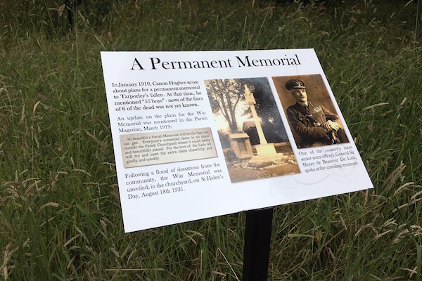 The Tarporley Memorial Walk, a pop-up outdoor museum telling the area’s World War 1 story, is now open in the centre of the village.