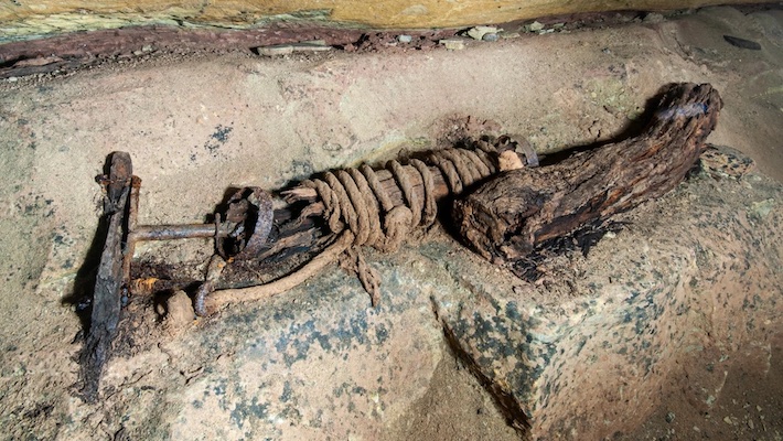 Discoveries in the mine include a windlass (winch) with a rope still tightly wrapped around it.