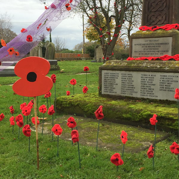 The knitted poppies were made by members of the Haughton & Faddily WI and the wooden poppies were made by church members Charles Hull and James Stott.