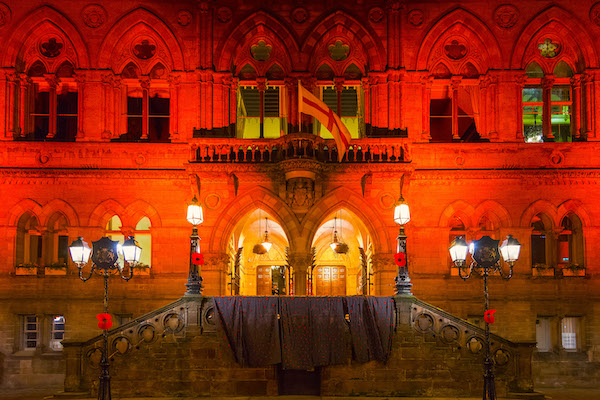 Chester Town Hall will be illuminated in red from this Friday (6th) until 12th November to commemorate Remembrance Sunday and Armistice Day.