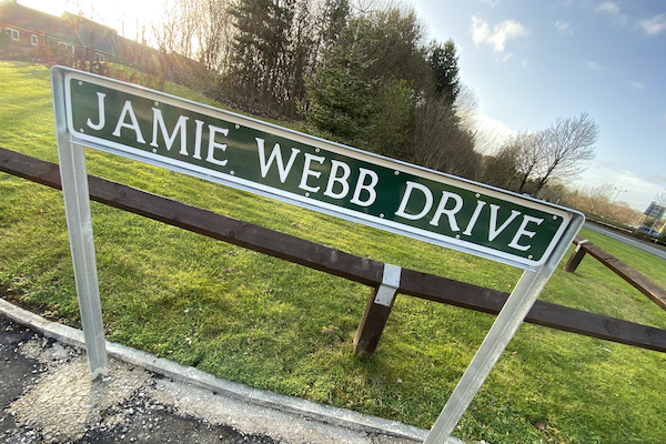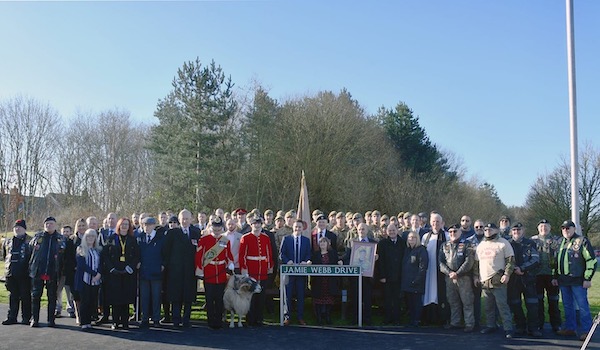 Today saw the official unveiling of a new road named ‘Jamie Webb Drive’ in memory of L Cpl Jamie Webb who was killed in Afghanistan in 2013.