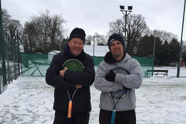 Jarrod Wood and John Walsh took to the astro turf at Hartford Tennis Club in blizzard conditions to complete the 24-hour tennis marathon.