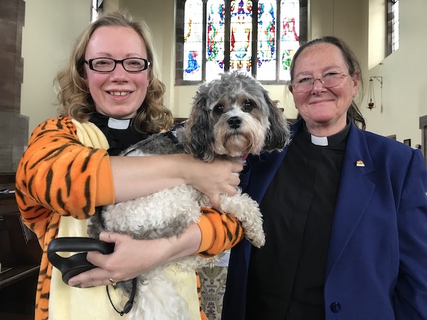 The congregation brought along their rabbits, cats, dogs – and even a bantam chicken – to be blessed. Children brought cuddly toys, and there were also people dressed as animals.