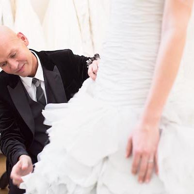 Multi award-winning fashion designer and star of Channel 4’s The Posh Frock Shop, Ian Stuart visited Brides of Chester recently…