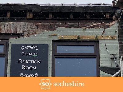 The frontage of a restaurant in Handforth has collapsed, unexpectedly, resulting in it being closed for the foreseeable future. Guiliano…