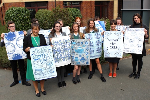 When the owners of Ginger and Pickles tearooms, based in Nantwich and Tarporley, set a live brief for year 10 textiles students at The Grange School to design and create decorative embellished tea towels to be exhibited and sold in their tearooms, the students responded with gusto!