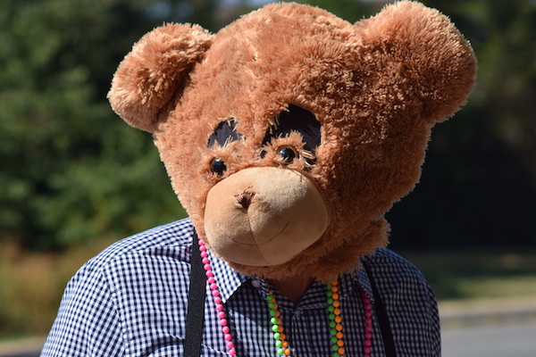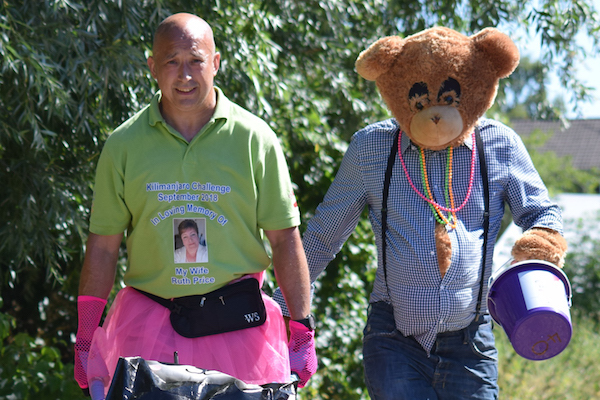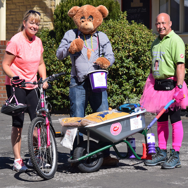 “Ian went above and beyond as it was hot pushing the wheelbarrow but must have been very uncomfortable dressed as a bear – his wife Sarah followed our progress and brought cold water to us at various locations throughout the walk.