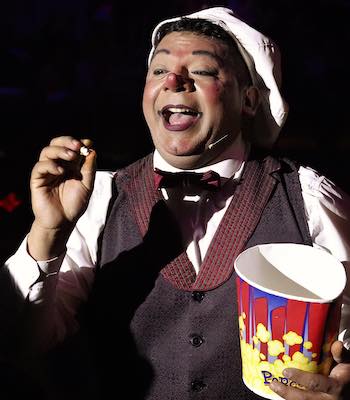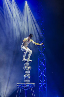 Camila the Goddess of the Skies swings through the clouds on the Trapeze, and Alejandro astonishes in a risky Rolla Rolla act, balancing on ever-increasing towers of tubes.