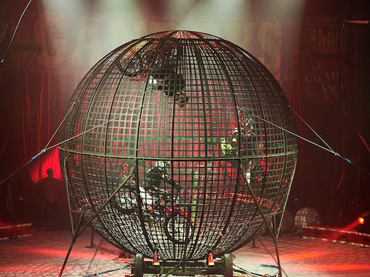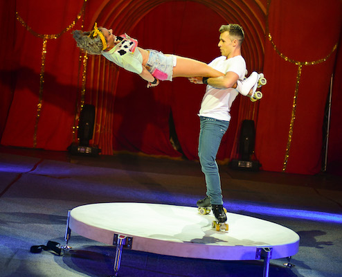 High speed roller-skating as Duo Eclipse perform incredible hand-to-hand skills topped off with a daring neck-spin before the Double wheel of death takes centre stage revolving at nearly 30 mph.