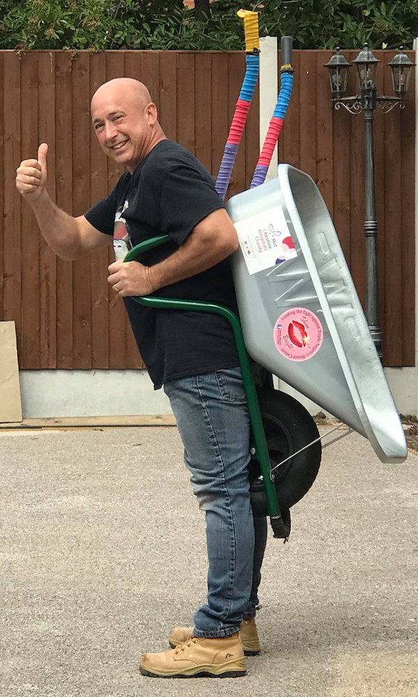 The pair’s next challenge on Sunday 9th September 2018 is another walk involving the wheelbarrow and bear costume – but this time they intend to walk up a mountain!