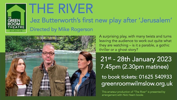 The River runs at The Green Room Theatre in Wilmslow from 21st to 28th January 2023. Performances start at 7.45pm (plus a matinee on Saturday 28th January at 2.30pm).