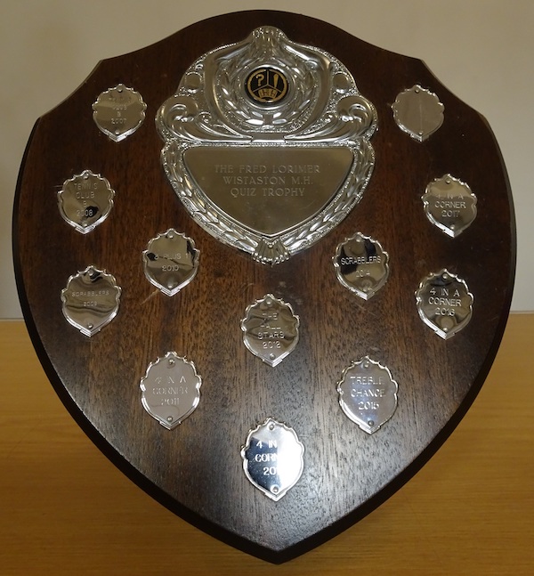 On the evening of Tuesday 23rd October 2018 sixteen teams participated in six rounds of ten questions at Wistaston Memorial Hall’s annual quiz for the Fred Lorimer Trophy.